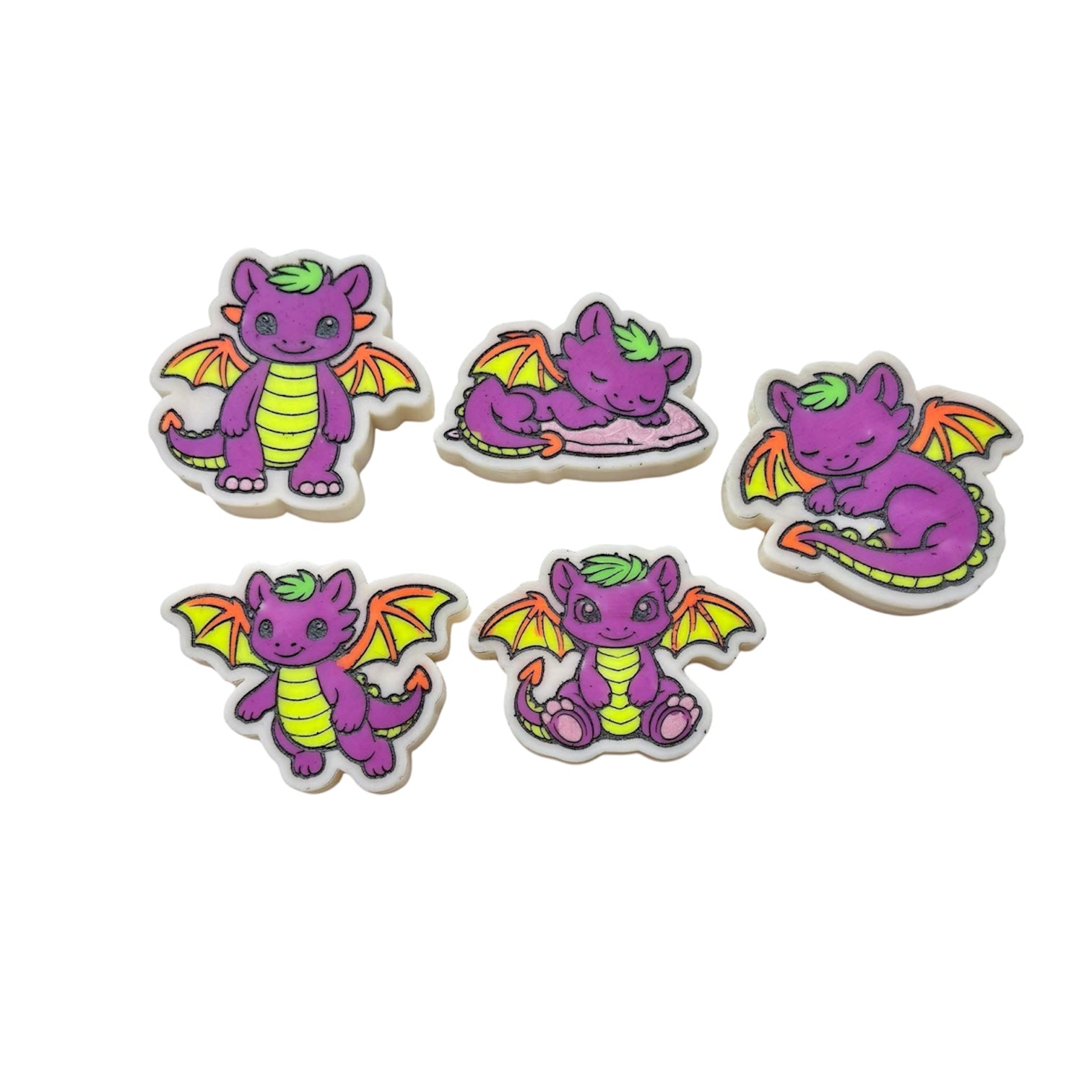 Sizes vary, all dragons are between 55-60mm at the biggest part and are all 10mm thick